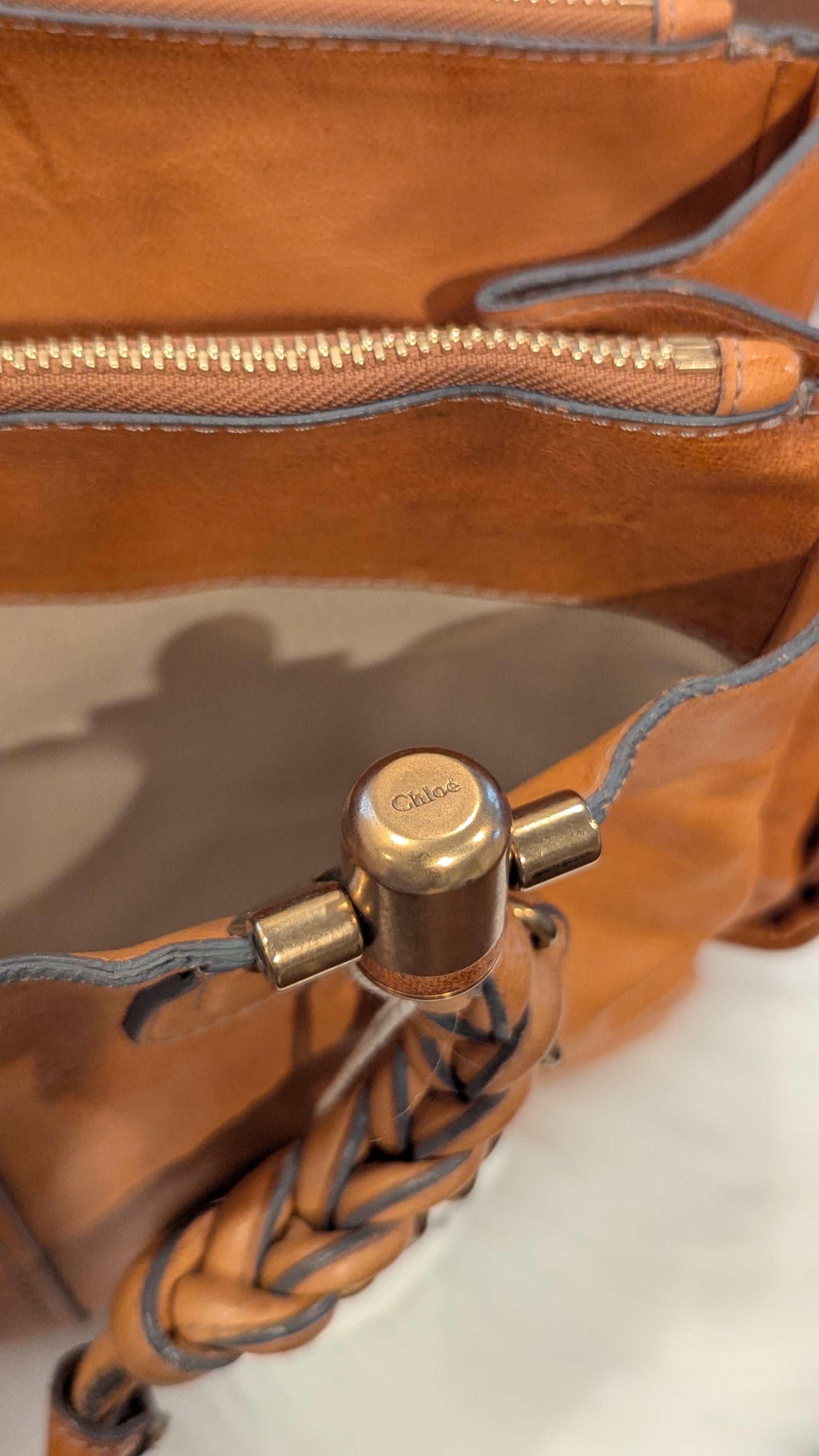 Vintage Chloé shoulder bag crafted from soft genuine leather with elegant braided handles, featuring a timeless silhouette, natural patina, and light wear consistent with age.